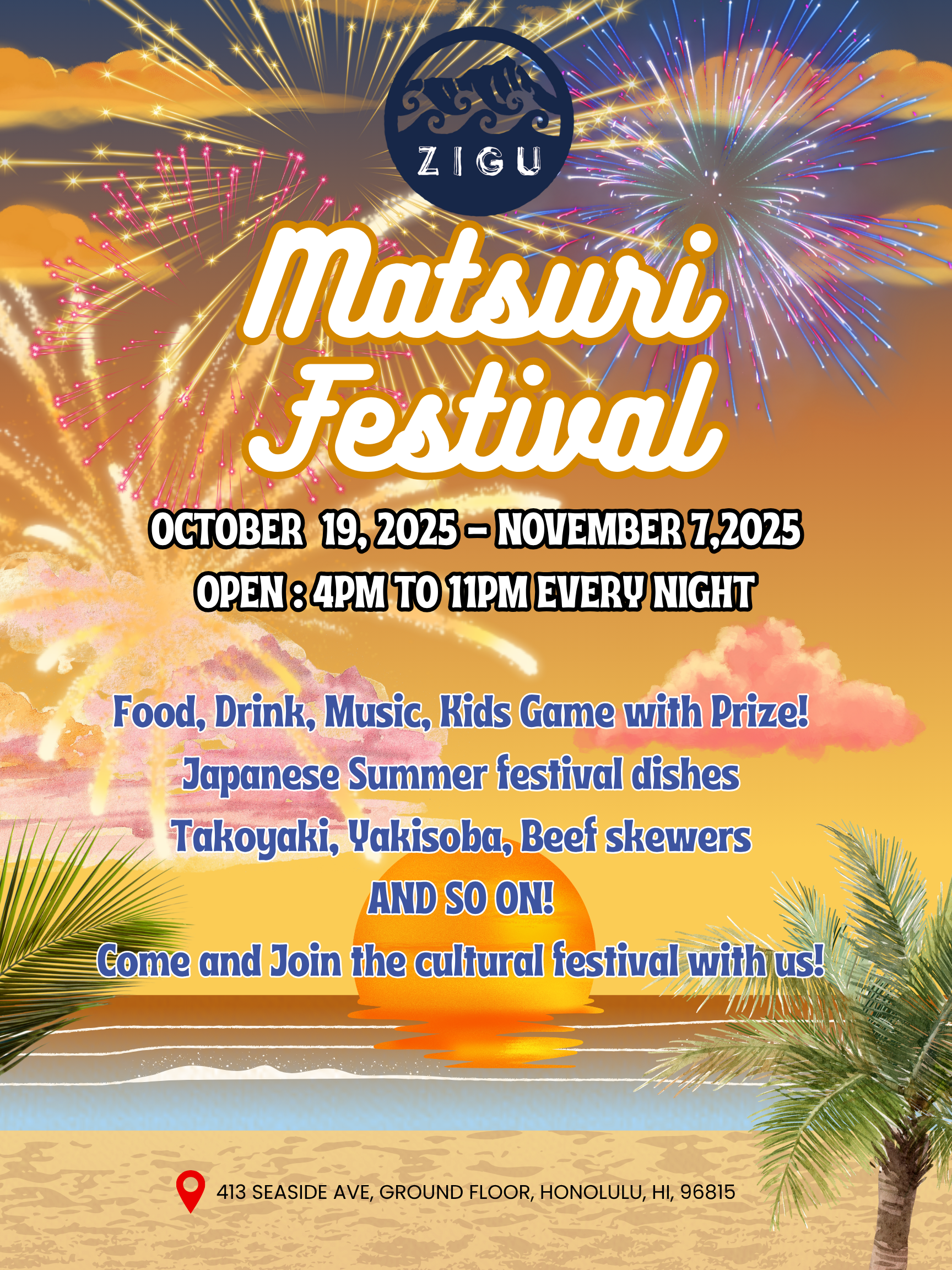 Here at ZIGU, we believe the key to running a successful restaurant is to serve fresh local ingredients. We cook in a Japanese style using only ingredients found here in Hawaii. You'll enjoy authentic Japanese cooking and sake either inside our cozy interior or outside our spacious courtyard terrace.